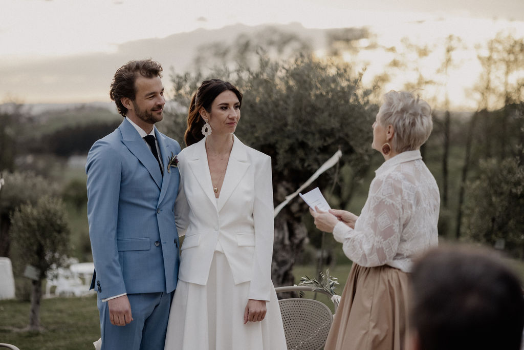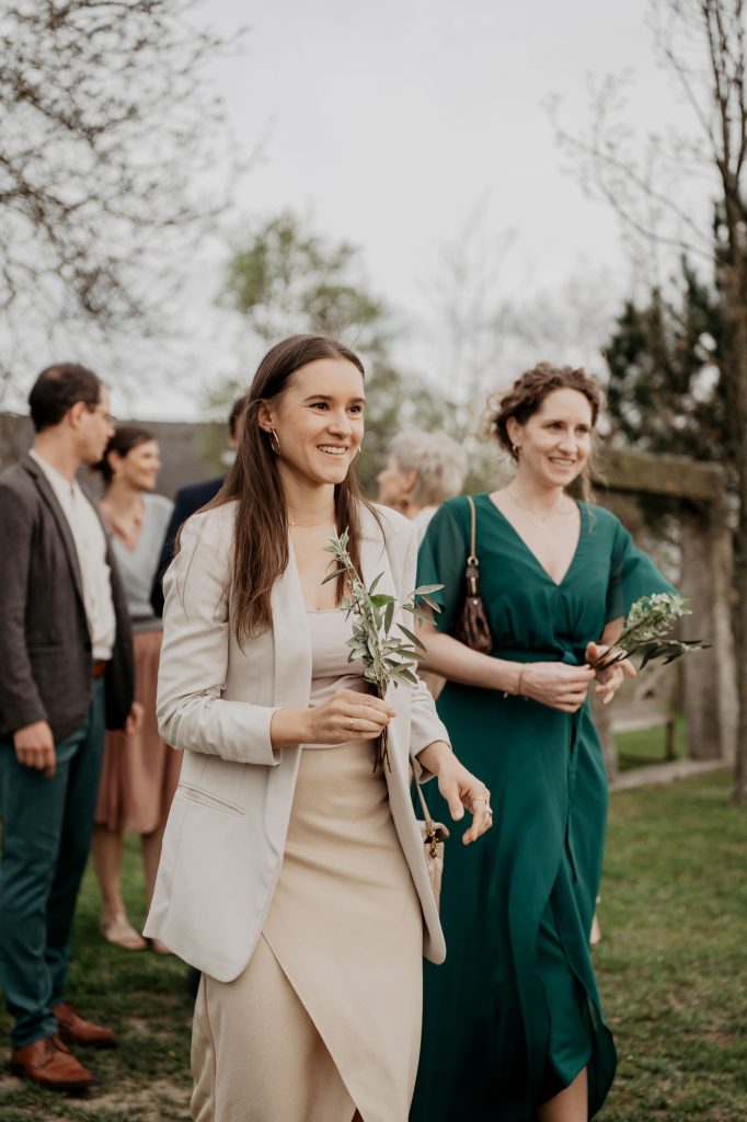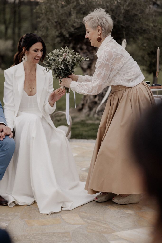 Bei Teresas und Lucas Trauung wurden die Gäste vom Brautpaar empfangen und bekamen zum Einzug einen Olivenzweig mit, aus dem ich später den Brautstrauß gebunden habe. In jedem Fall sollte dieser Augenblick besonders zelebriert werden, denn er ist wunderschön.