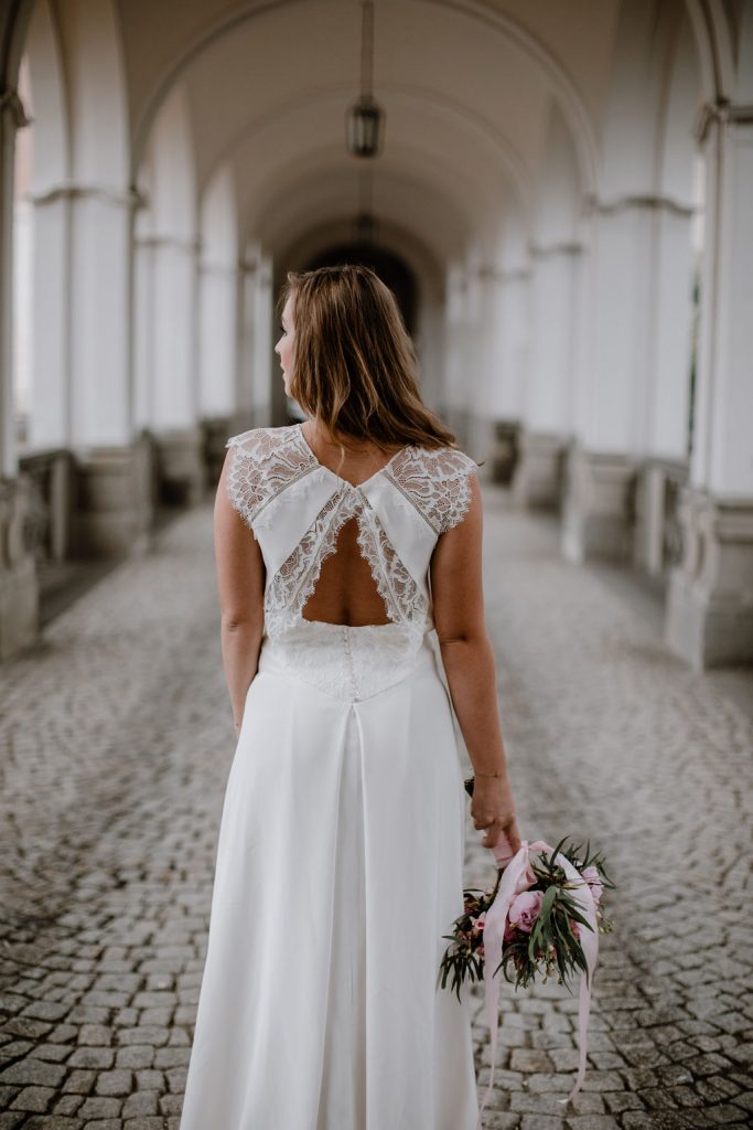 Unsere Braut trägt Kleider vom Atelier Bona Res. Theresa Nippert, das kreative Designerköpfchen hinter Bona Res, liebt feine Stoffe, aufwendig gearbeitete Spitzen, verschnörkelte Borten und verspielte Details und fertigt individuelle Brautkleider, die nicht nur mein Herz höher schlagen lassen.